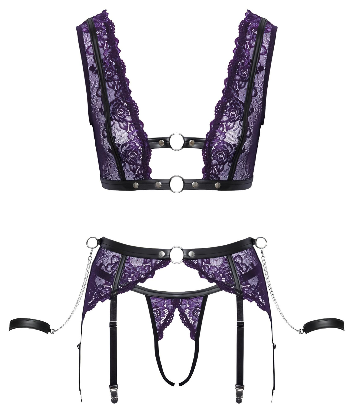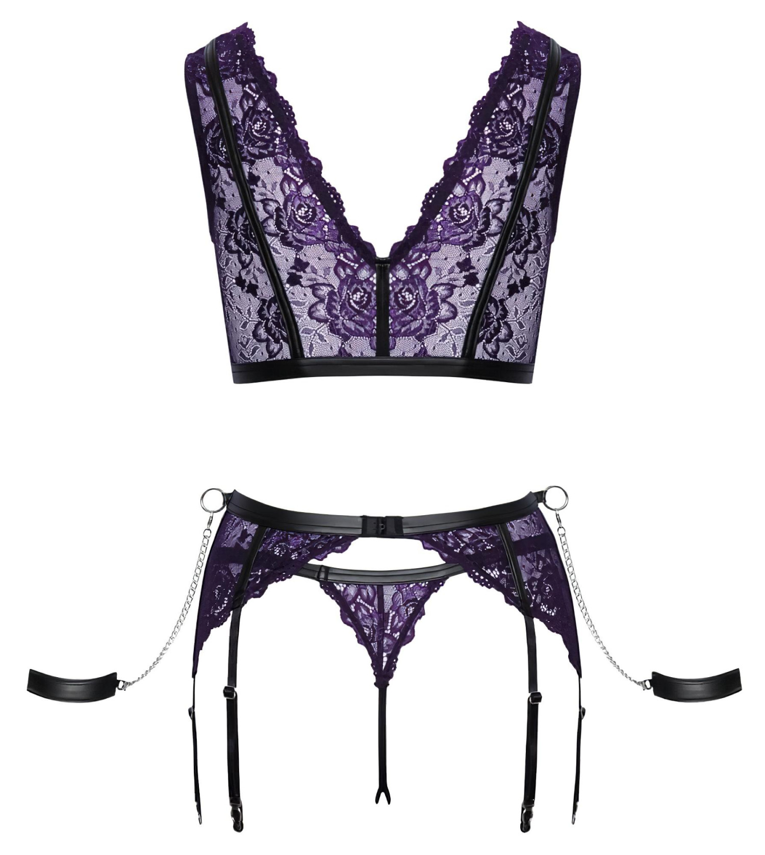 Cottelli Bondage - Dessous-Set und Handschellen (Schwarz-Lila) - XL